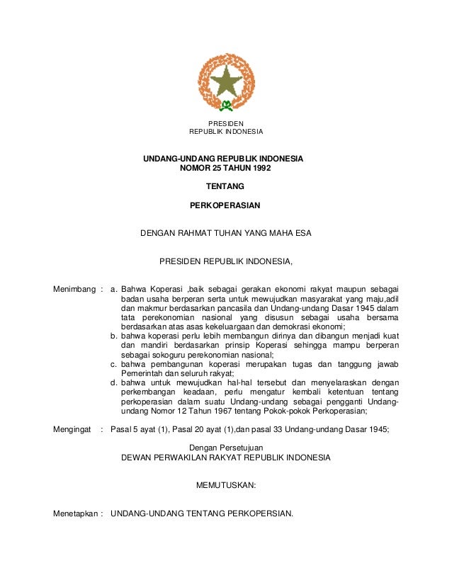Pasal 16 Undang-Undang Nomor 25 Tahun 1992 tentang Perkoperasian yang mana